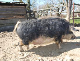 - Lasasta mangulica ima čekinje crne boje, dok je donji dio tijela crn ili srebreno siv, a ta svjetlija linija proteže se od usta do između do korijena repa, dok je rep bijeli s crnim vrhom (foto 3). Ovaj tip je nastao križanjem mangulice i “srijemske” svinje u okolici mjesta Buđanovci (Banat – Vojvodina).